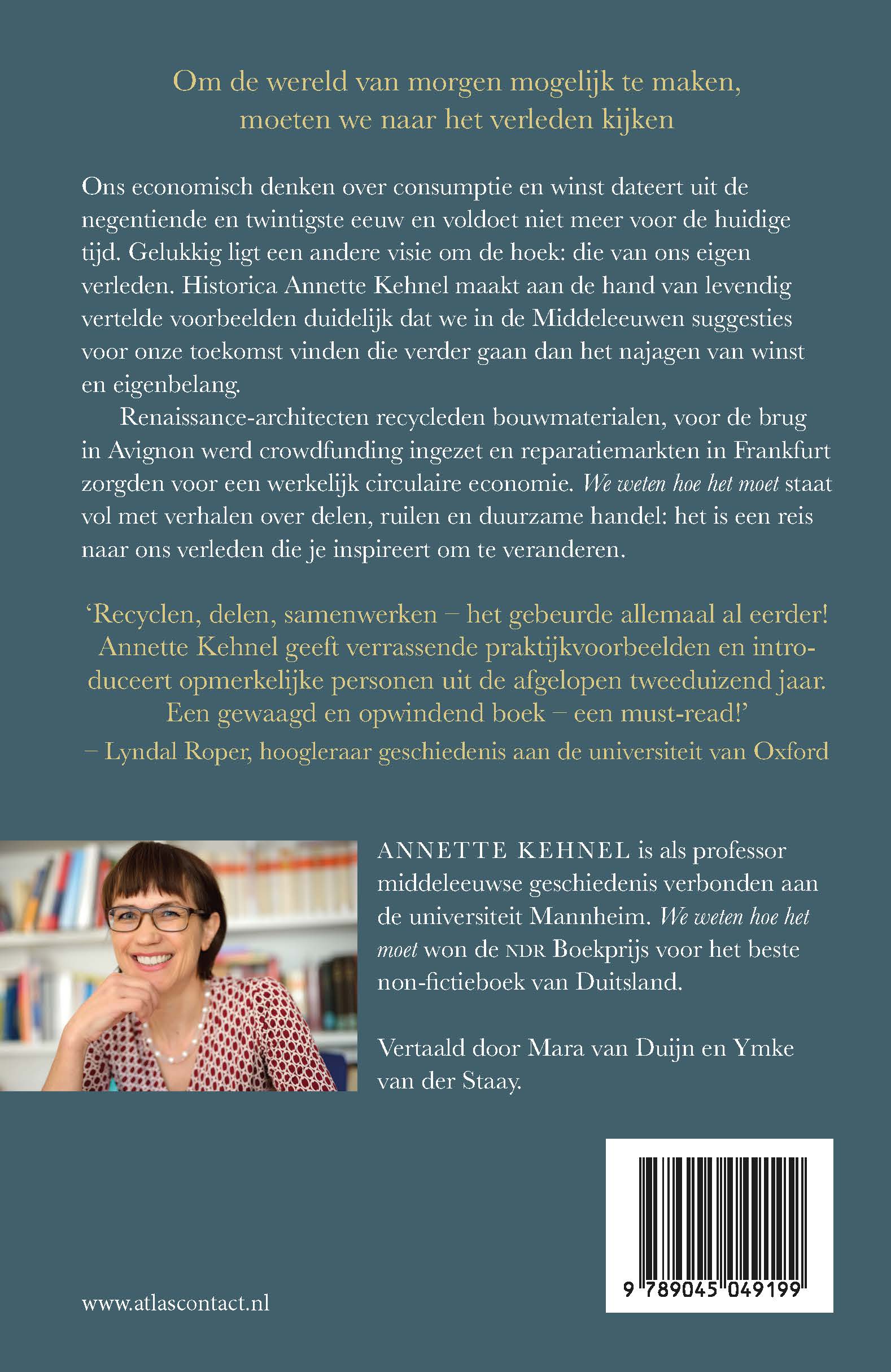 Ons economisch denken over consumptie en winst dateert uit de negentiende en twintigste eeuw en voldoet niet meer voor de huidige tijd. Gelukkig ligt een andere visie om de hoek: die van ons eigen verleden. Historica Annette Kehnel maakt aan de hand van levendig vertelde voorbeelden duidelijk dat we in de Middeleeuwen suggesties voor onze toekomst vinden die verder gaan dan het najagen van winst en eigenbelang. Renaissance-architecten recycleden bouwmaterialen, voor de brug in Avignon werd crowdfunding ingezet en reparatiemarkten in Frankfurt zorgden voor een werkelijk circulaire economie. We weten hoe het moet staat vol met verhalen over delen, ruilen en duurzame handel: het is een reis naar ons verleden die je inspireert om te veranderen.